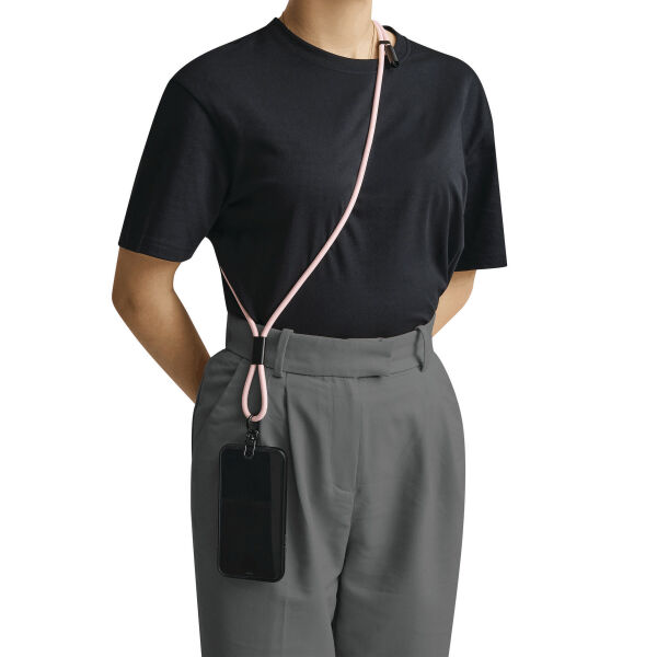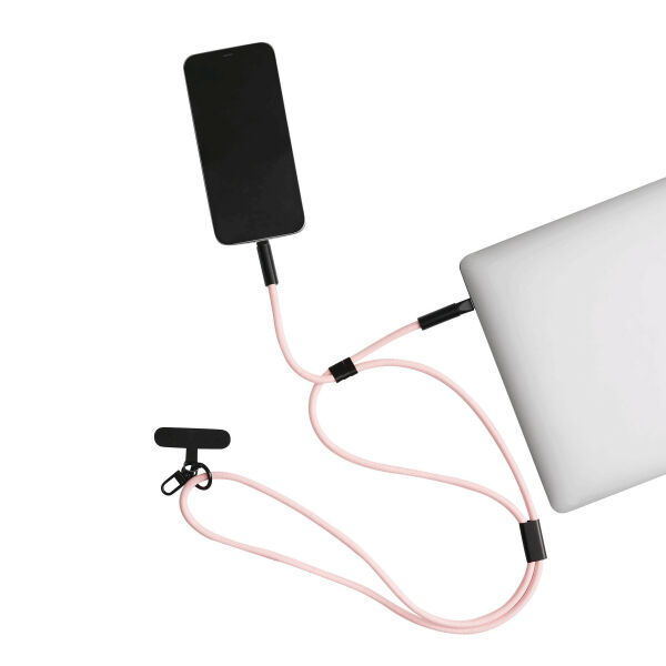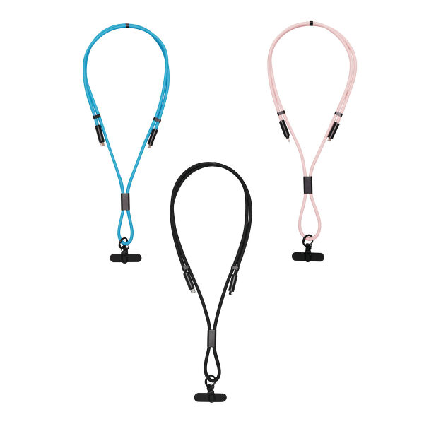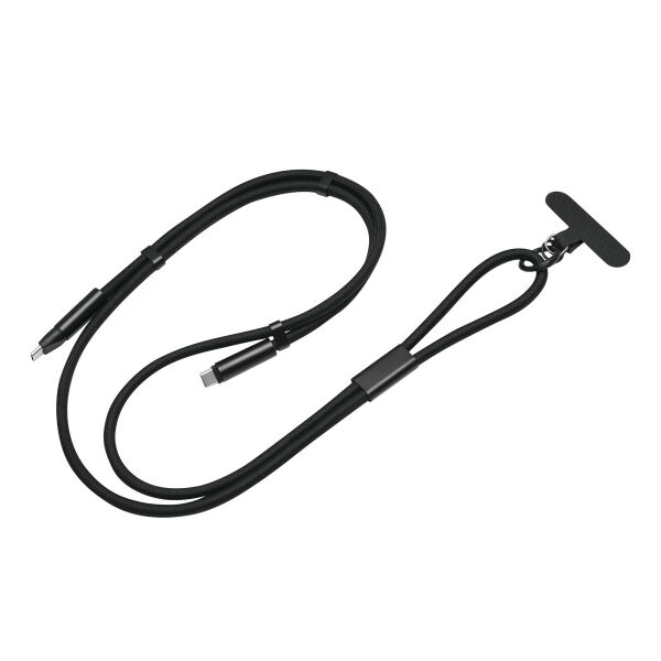 Universele mobiele telefoonriem MOBILE CARRY voor smartphones: met bevestigingsplaatje om tussen telefoon en hoesje te plaatsen (alleen geschikt voor hoesjes die rondom bescherming bieden), kleine karabijnhaak om bijvoorbeeld sleutels aan te bevestigen, mobiele telefoonketting kan eenvoudig in grootte worden versteld (om over de schouder of om de nek te dragen), mobiele telefoonketting is ook een 65 W oplaad- en datakabel, USB type C, kabel met stoffen omhulsel (kabellengte ca. 144 cm).