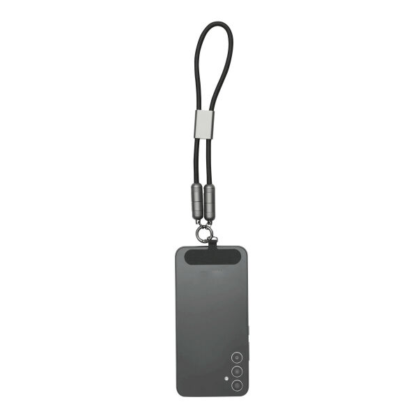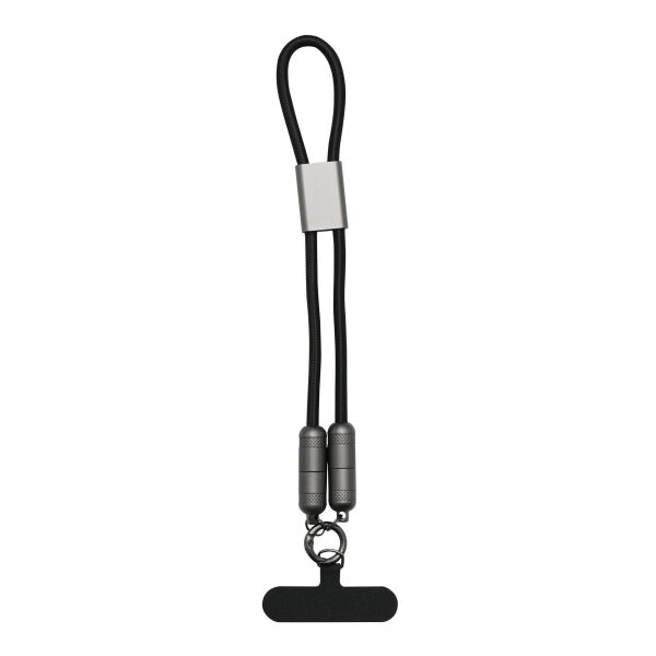 Laad- en datakabel SHORTCARRY: voor het opladen van smartphones en USB-aangedreven apparaten, incl. laptops (65 W vermogensoverdracht) en voor gegevensoverdracht, incl. 2 laadstekkers (USB type C), kabellengte ca. 45 cm, laad- en datakabel is tevens een polslus voor de telefoon, met bevestigingsplaatje om tussen smartphone en hoes te plaatsen (alleen geschikt voor hoesjes met volledige randbescherming), incl. karabijnhaak (de karabijn is NIET geschikt als beveiliging bij klimmen)