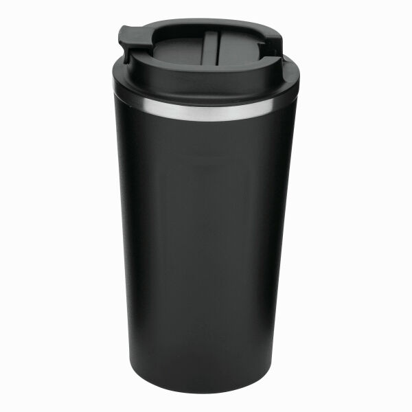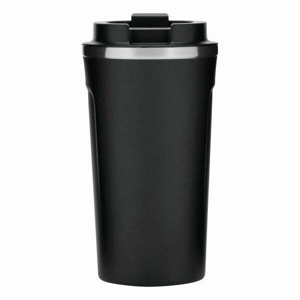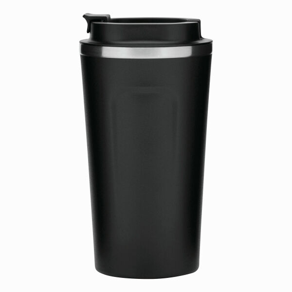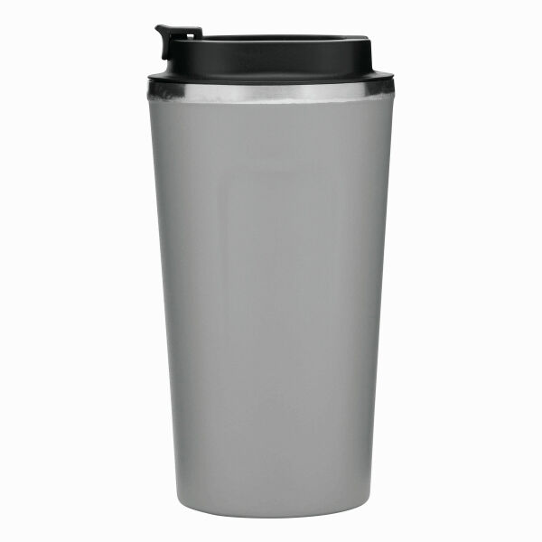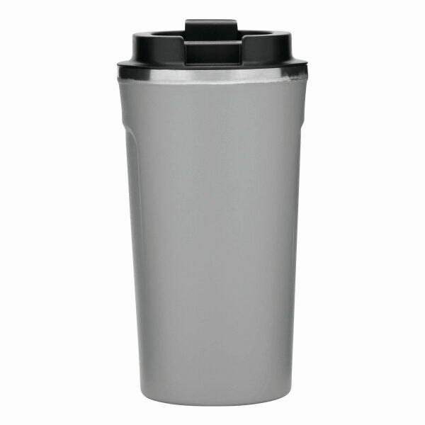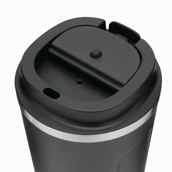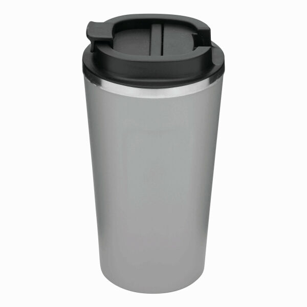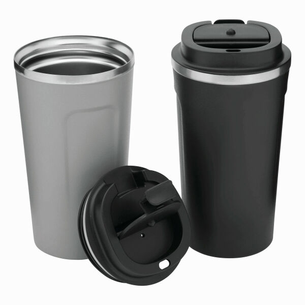 Isoleerbeker COFFEE TIME, dubbelwandig: binnen- en buitenkant RVS, deksle met schroefsluiting, siliconen afdichting en geïntegreerde drinktuit, inhoud ca. 500 ml.