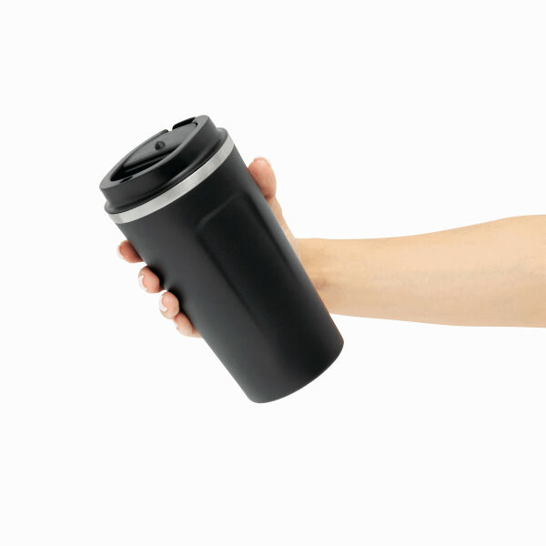 Isoleerbeker COFFEE TIME, dubbelwandig: binnen- en buitenkant RVS, deksle met schroefsluiting, siliconen afdichting en geïntegreerde drinktuit, inhou…